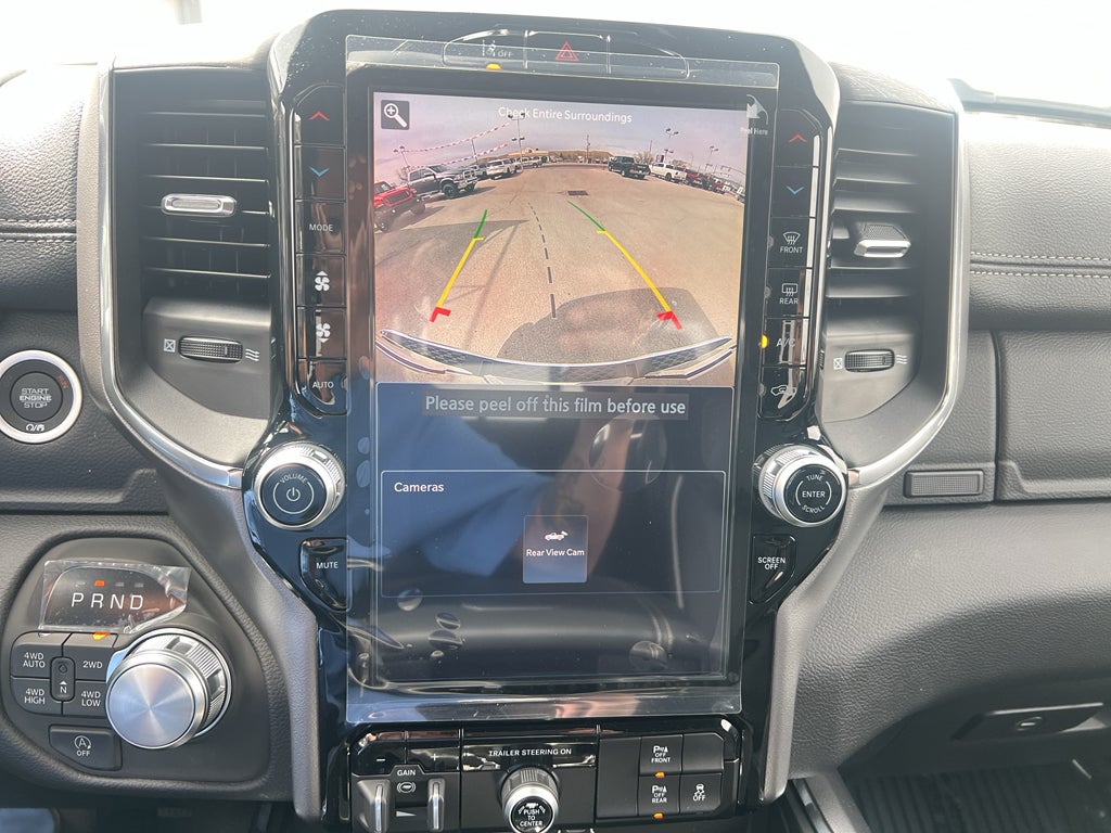 The installed navigation system will keep you on the right path. This model is pure luxury with a heated steering wheel. Apple CarPlay: Seamless smartphone integration for the vehicle - stay connected and entertained on the go! The Ram 1500's Forward Collision Warning feature alerts drivers to potential front-end collisions. The leather seats in this vehicle are a must for buyers looking for comfort, durability, and style. This unit features a hands-free Bluetooth® phone system. Start this model from inside with remote start. This vehicle has automated speed control that adjusts to maintain a safe following distance, enhancing highway driving convenience. This unit comes equipped with Android Auto for seamless smartphone integration on the road. See what's behind you with the back up camera on this unit. A trailer braking system is already installed on this unit. Set the temperature exactly where you are most comfortable in this 1/2 ton pickup. The fan speed and temperature will automatically adjust to maintain your preferred zone climate.
